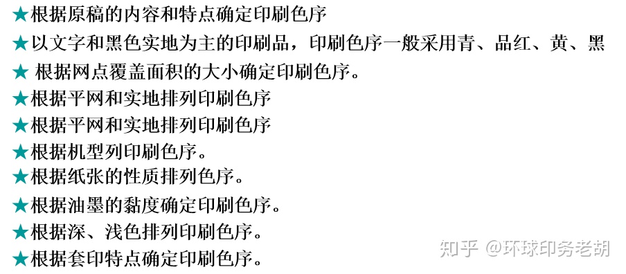 a、油墨的透明性:透明性低的油墨先印、透明度高的油墨后印