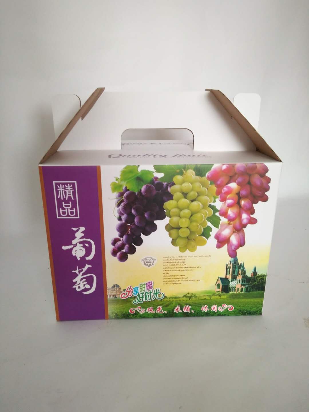 5斤10斤裝精美葡萄包裝禮盒,采用白卡面紙+優(yōu)質(zhì)瓦楞,彩色印刷,質(zhì)感啞膜,模切手提款 ,兩種規(guī)格,三種印刷。鄭州紙上印包裝加工廠現(xiàn)有大量現(xiàn)貨,歡迎選購。