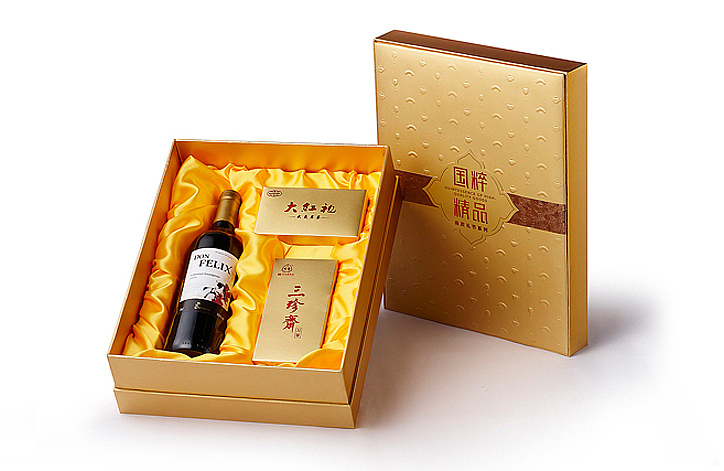 與彩盒不同的是,精品盒可以用多種材料制成,布,紙,皮,木,塑膠等等。它的手工較多,工藝較為復(fù)雜。一般是作為高檔包裝使用,在高檔珠寶首飾、酒類、茶葉等行業(yè)應(yīng)用
